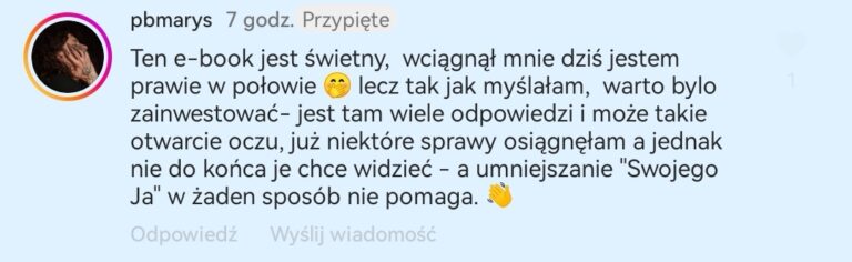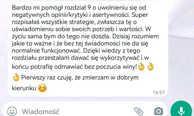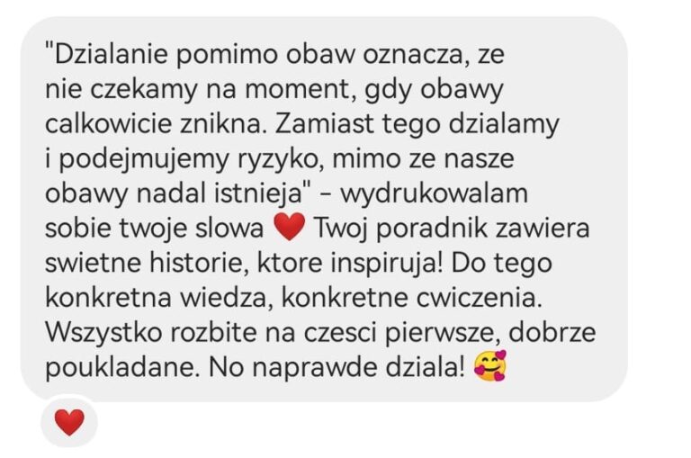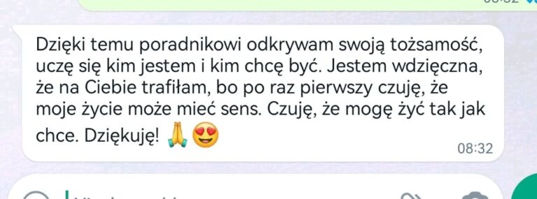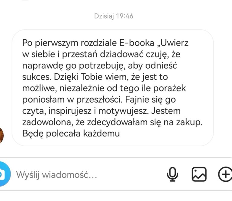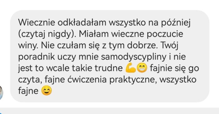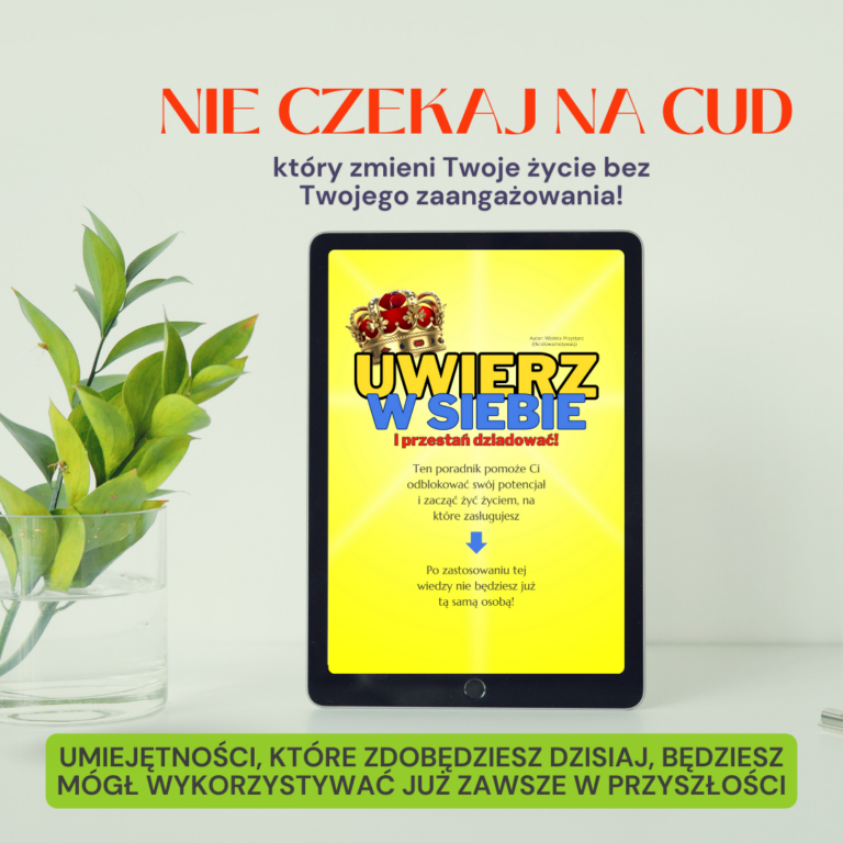 Skoro ja (trójkowy uczeń) potrafiłam odmienić swoje życie, Ty również sobie z tym poradzisz! Zwłaszcza, że daję Ci gotowe narzędzie, z którego wystarczy tylko skorzystać. Tym narzędziem jest Poradnik „Uwierz w siebie i przestań dziadować”